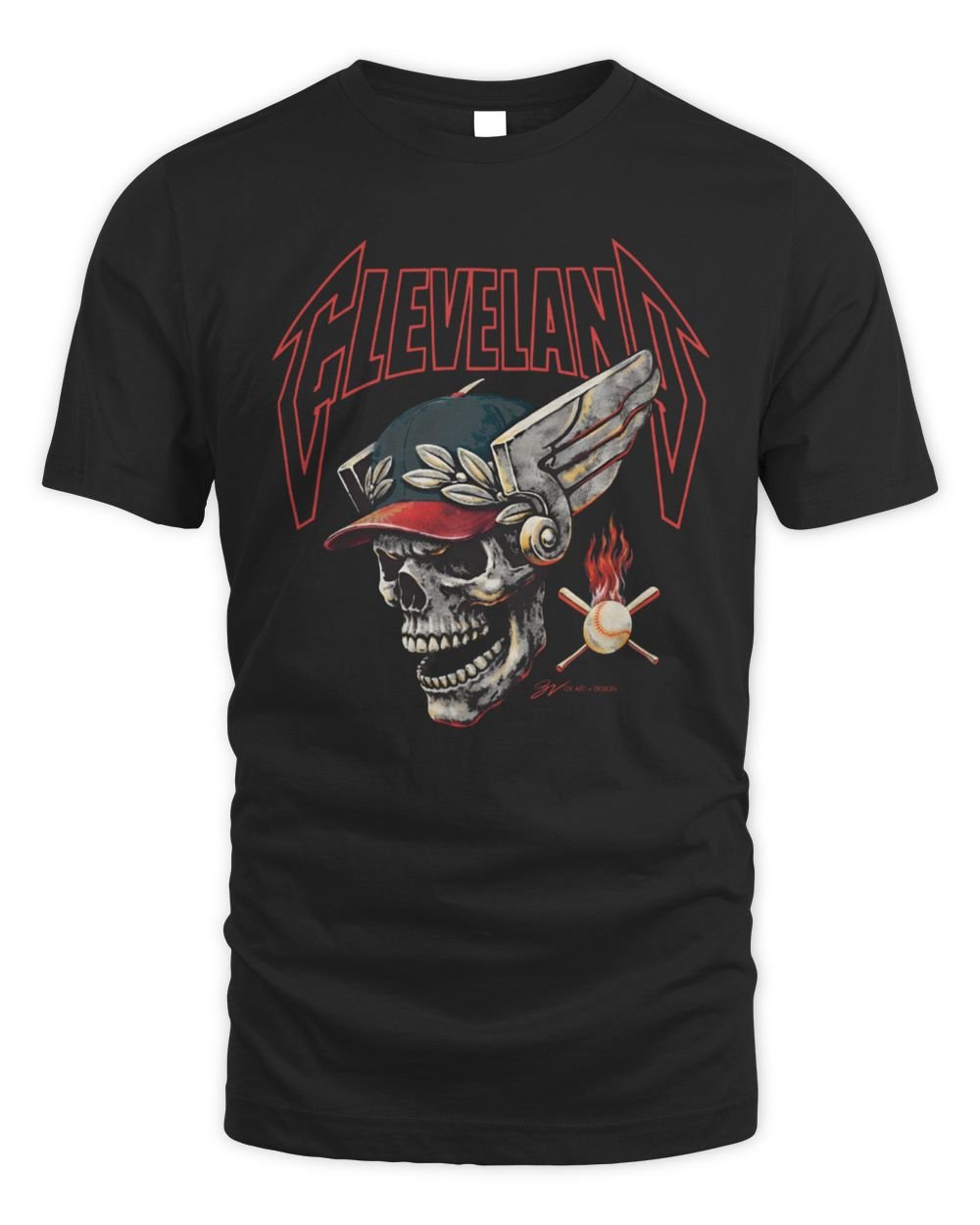 Baseball Skull Flames T Shirt