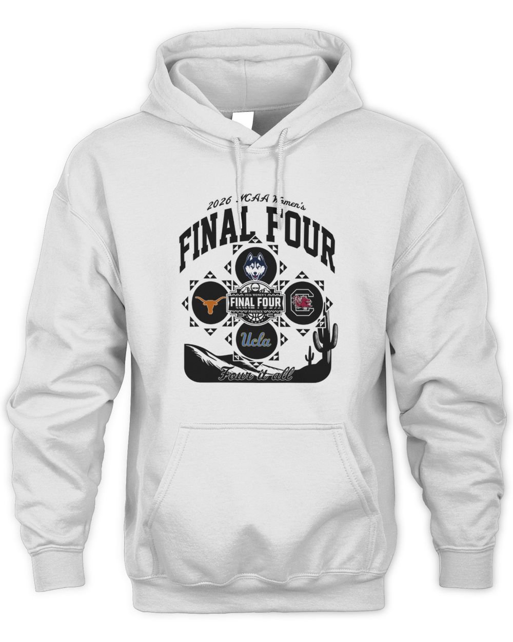 Uconn South Carolina Ucla and Texas 2026 NCAA Women’s Basketball Final 4 Four It All Hoodie